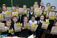 Все призеры, победители и участники олимпиады «Светофорик» награждены памятными призами – светоотражающими в тёмное время суток наклейками «Смайлик. Поздравляем!