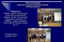 6 апреля 2017г. в ЦВР Авиастроительного района был проведён очный этап конкурса - участие команд в районном конкурсе школьных музеев и музейных уголков, посвящённых «Истории школы».