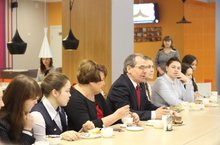 Сегодня, 10 марта 2015 года, на деловом завтраке присутствовал ректор КНИТУ-КАИ им. А.Н.Туполева А.Х.Гильмутдинов. Главной темой завтрака стал ответ на вопрос «Для чего учиться в школе?». Столь необычный формат общения интересен и школьнику и гостю из университета: в рамках таких мероприятий устанавливается диалог между школами и высшими учебными заведениями, а ребята могут узнать об университете из первых уст и лично задать интересующие вопросы об обучении после школы самому ректору. На деловом завтраке собрались учащиеся 9-11-х классов, поэтому в ходе общения ректор дал несколько советов, как лучше подготовиться к сдаче ЕГЭ и что поможет выбрать любимую профессию. По его словам, чтобы успешно сдать ЕГЭ, необходимо в течение всех школьных лет поэтапно изучать предметы, а уже в 11-м классе, еще до сдачи пробных ЕГЭ, самостоятельно повторить материал. Такой подход позволит хорошо усвоить предмет в течение школьных лет и лучше ориентироваться в изученном материале в ходе экзамена. «Простое зазубривание не даст хороших плодов. Все предметы интересны. Необходимо найти свой интерес – в каждом. Ведь и химия, и география, и обществознание – увлекательны и полезны. Гуманитарию пригодится математика, а будущему инженеру надо знать литературу. Школьное образование – это ваш фундамент. Чем он богаче и шире, тем крепче вы будете стоять на ногах», - обратился к ребятам Альберт Гильмутдинов. Отвечая на вопросы ребят и учителей, ректор КНИТУ-КАИ рассказал о выборе вуза, будущей профессии, а также об опыте Сингапура в образовательной сфере. «Следуйте мечте, учитесь, выбирайте ваши знания – ведь это ваш главный капитал. Перед вами вся жизнь, а знания позволят сделать ее богаче и интереснее», - отметил он. После того, как закончился завтрак, ребята еще долго задавали вопросы о том, как поступить в КНИТУ-КАИ.