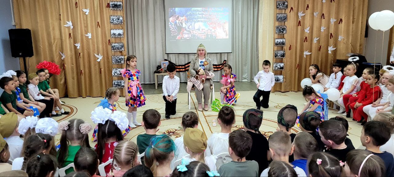 Накануне 9 мая в детском саду прошл праздник для средних, старших и подготовительных групп, посвященный дню Великой Победы. Праздник был подготовлен с целью формирования у детей знаний о Великой Отечественной войне, обогащения знаний дошкольников об истории своей страны, воспитания чувства гордости за героизм нашего народа, воспитания устойчивого интереса к армии. В программу мероприятия вошли песни о празднике победы, о мире, о солдатах, танцы, стихи о войне, о бессмертном подвиге защитников Отечества.
