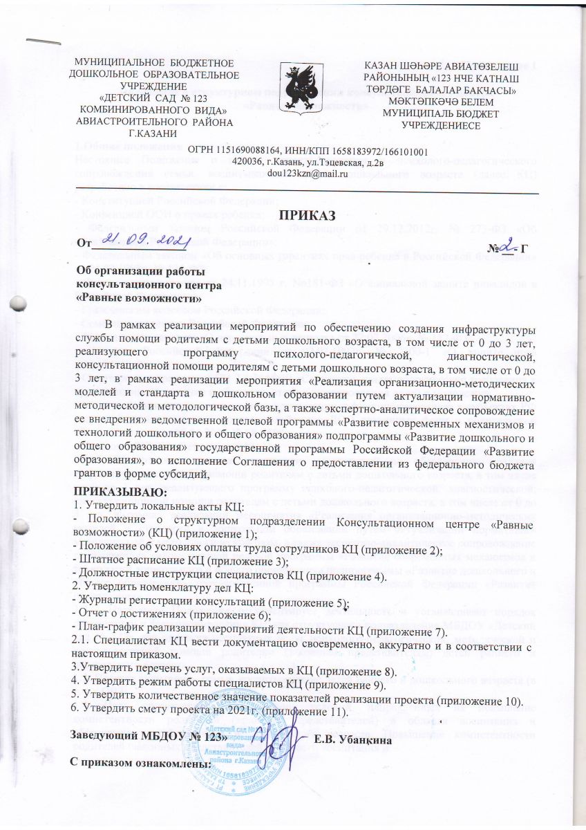 | Короткое название: | МБДОУ «Детский сад № 123 комбинированного вида» Авиастроительного района г.Казани |