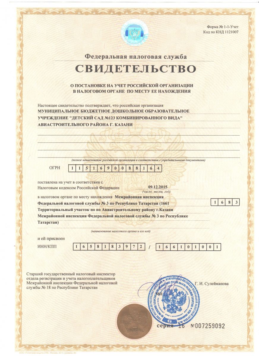 | Короткое название: | МБДОУ «Детский сад № 123 комбинированного вида» Авиастроительного района г.Казани |