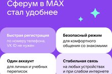 Сферум в MAX - это легкое и быстрое приложение, удобные функции для работы,безопасное общение, полезные сервисы. Возможность общаться в едином пространстве даже при слабом интернете. Сферум в MAX - учебное пронстранство позволяющее пересылать фото , видео и презентации до 4 ГБ. Сферум в MAX - это легко!