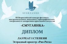 Инструментальный оркестр "Рио-Рита" участвовал во всероссийском конкурсе - фестиваля инструментального, вокального, хореографического, театрального и декоративно-прикладного искусства "Смуглянка" и занял почетное место - Лауреат 1 степени.