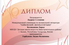 Учащиеся ДШИ Авиастроительного района участвовали в Международной олимпиаде по музыкальной литературе 2Чайковский. Жизнь в музыке" и заняли 1 -ые и 2-ые места. Поздравляем!!! Желаем дальнейших успехов.