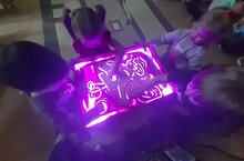 Сегодня пасмурно, если выключить в группе свет можно на волшебном столе порисовать и пофантазировать. Малыши очень увлеклись.