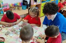 Стало хорошей и доброй традицей встречатся с наставниками "Движения первых" гимназии № 33. С ними воспитанники подготовительных групп рисуют, мастерят и веселятся.