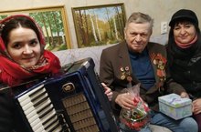 Сегодня исполнился 91 год нашему подшефному ветерану ВОВ. Дети и сотрудники приготовили ему подарки и задушевные песни. Желаем имениннику долгих лет жизни, крепкого здоровья и ясного мирного неба над головой.