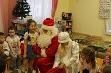 Сегодня Дед Мороз и Снегурочка посетили наш детский сад. Дети рассказывали стихотворения, пели песенки и получали подарки.