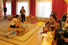 Сегодня члены методического объединения по физическому развитию во главе с инструктором по физической культуре Попович Людмилы Николаевны провели практический семинар для педагогов детского сада и познакомили их с играми на напряжение и раслабление, с блоком игр "С головы до пят- образ тела" и играми развивающими восприятие и эмоциональную сферу детей.