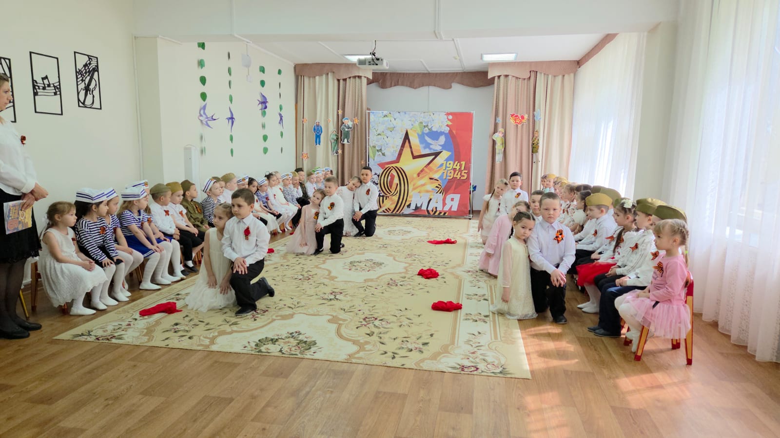 Сегодня в нашем детском саду состоялся праздник, посвященный Дню Победы. Дети рассказывали пронзительные стихи и песни о войне, о бессмертном подвиге советского солдата, о героизме советского народа. Воспитанники 7 группы выступили с трогательным номером " А закаты алые...".