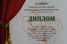 Детскому саду вручен Диплом детского театрального фестиваля "Сәйяр" за постановку "Корак песи" 20.12.2016