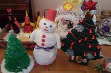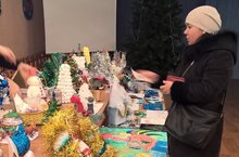 Благотворительная ярмарка, где представлены новогодние работы, изготовленные в рамках конкурса "Лучшие новогодние поделки, рисунки и украшения". 26.12.2016