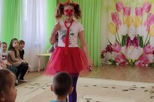 К ребятам в гости пришёла клоун Ириска. Дети вместе с клоуном с удовольствием играли в веселые игры, участвовали в забавных эстафетах.