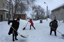 Сегодня во втором здании заболел дворник . Справились со снегом силами дружного коллектива!