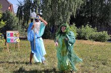 В садмке прошел веселый морской праздник под названием День Нептуна.. На празднике присутствовал Нептун, русалки и другие морские жители. .