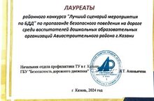 Наш детский стал стал лауреатом в районном конкурсе "Лучший сценарий мероприятия по БДД" организованном отделом профилактики территориального управления г. Казани ГБУ "Безопасность дорожного движения" совместно с отделом образования ИКМО г. Казани по Авиастроительному и Ново-Савиновскому районам.