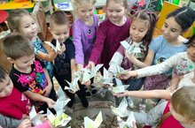 Сегодня по плану мероприятий "Недели открытых дверей" наши гости посмотрели открытое занятие по обучению татарскому языку "Богатая осень" в подготовительной к школе группе, педагогическое мероприятие по образовательной области "Физическок развитие" - "Веселые старты" в старшей группе, педагогическое мероприятие по образовательной области "Познание" - "Осенний праздник эколят" в подготовительной к школе группе. Бүген безнең кунаклар "Көзге муллык" мәктәпкә әзерлек төркеме өчен УМК элементлары кулланып сөйләм телен үстерү һәм аралашу буенча ачык дәресне карадылар, зурлар төркемендә "Күңелле стартлар" эстафетада катнаштылар, һәм мәктәпкә әзерлек төркеме балалары белән көз турында сөйләшеп, видеопрезентация карап, Эколята геройлары белән көзге эшләпәне хужабикәгә тапшырдылар.