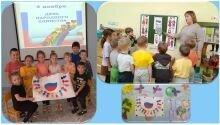 В подготовительной к школе группе "Родничок" ребята участвовали в викторине по презентации "День Народного Единства". Коллективная работа над стенгазетой увлекла всех! В подготовительной к школе группе "Радуга" ребята выполнили стенгазету и отправились в путешествие по ЛЭП буку " Моя Родина". В старшей группе "Солнечный зайчик" прошла беседа "Вместе дружно мы живем". Ребята рассматривали иллюстрации Национальных костюмов народов России, узнали интересные сведения о разных народах родной страны! -