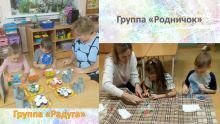 Образовательная деятельность в детском саду интересная и разнообразная.В группе "Радуга" сегодня рисовали.Раз мазок, два мазок -Получился Сапожок!В группе "Родничок"Лепили тапочкиДля любимой мамочки!