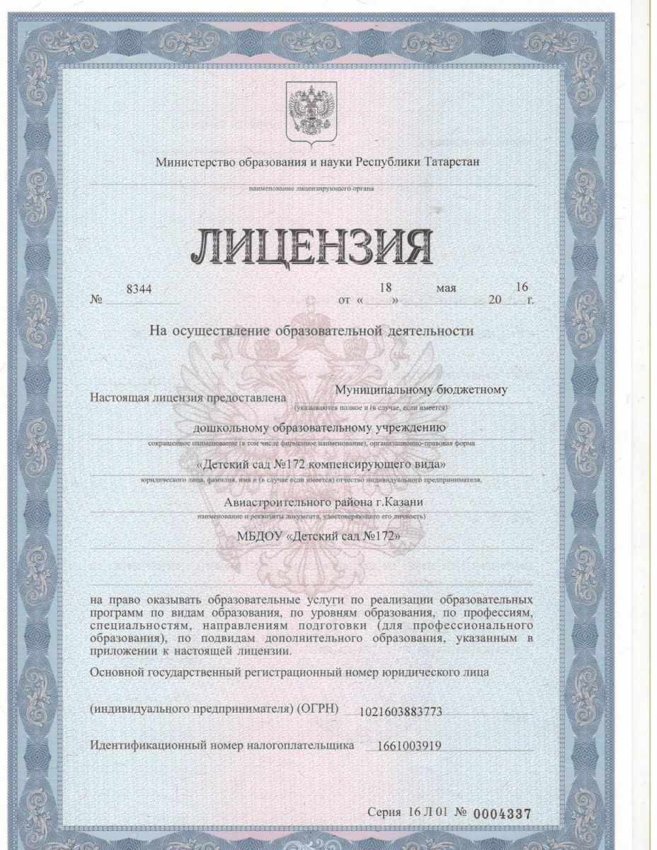 Короткое название: МБДОУ "Детский сад №172" Авиастроительного района г.Казани