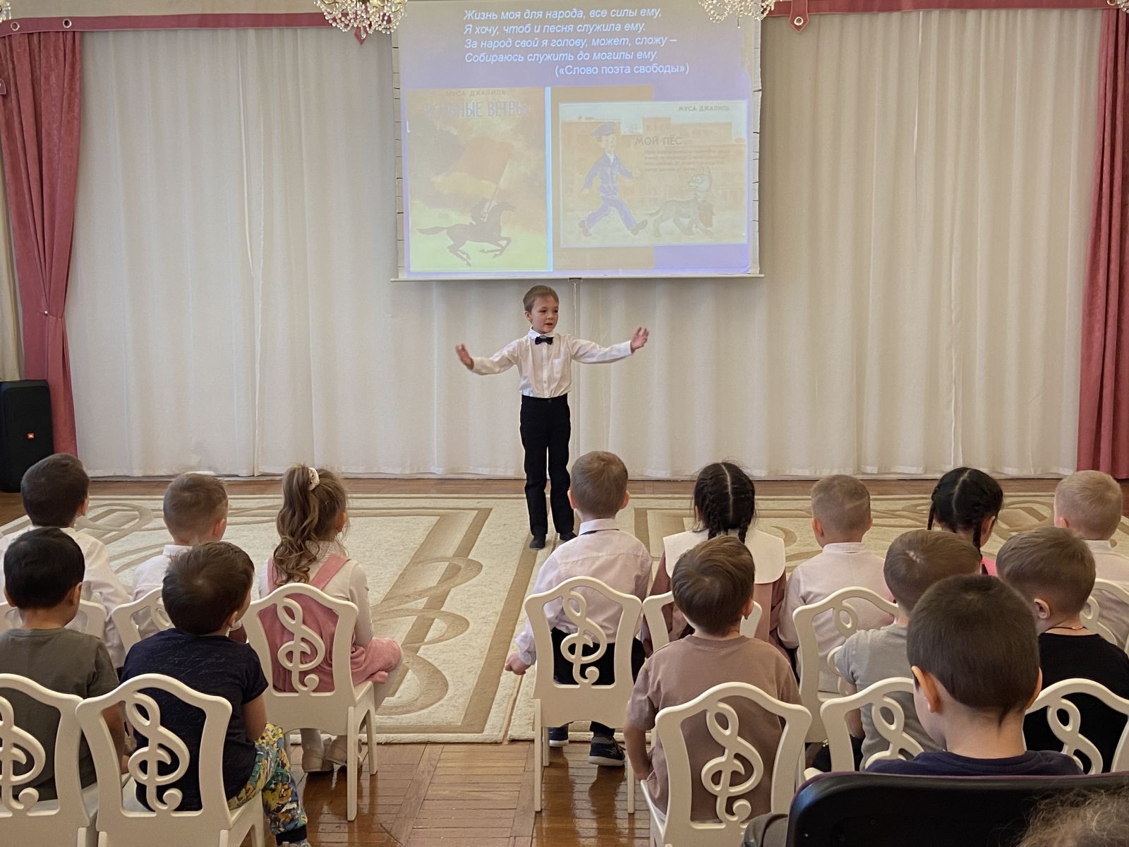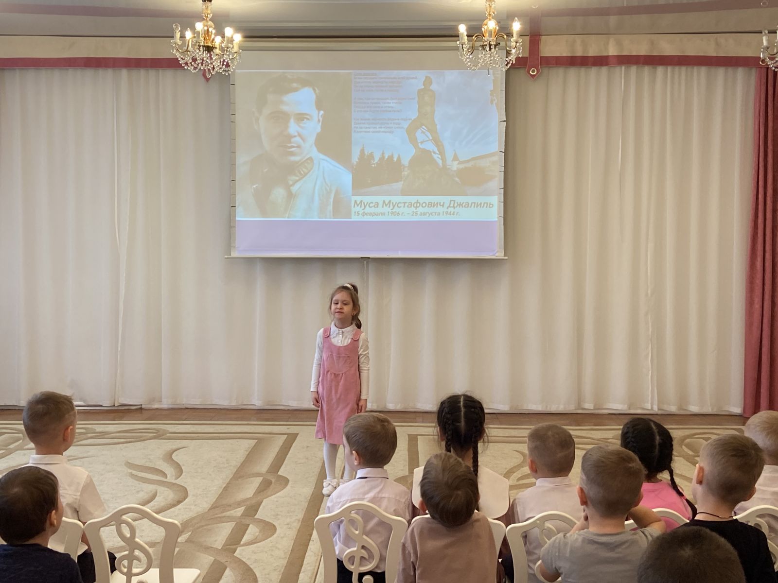В детском саду прошло мероприятие, посвященное 120-летию со дня рождения татарского поэта Мусы Джалиля. Целью данного мероприятия было познакомить детей с жизнью и творчеством поэта М. Джалиля, показать творческий путь и подвиг поэта в тюрьме Моабит. Дети смотрели презентацию про жизненный путь великого поэта, мультфильм "Мой пёс". В ходе мероприятия прозвучали стихотворения в исполнении юных чтецов. Для дошкольников была организована выставка-память, посвященная жизни и творчеству выдающегося татарского поэта. Муса Джалиль навсегда остался в наших сердцах – как поэт, как герой, как пример величайшего мужества.