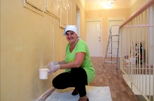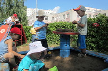 Красить садик нам пора - превратились в маляра. 09.07.2013