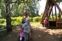 Любим мы кататься с горки: Маша, Оля и Егорка. 16.07.2013