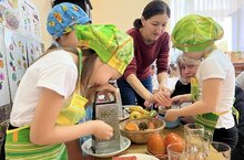 Ребята из подготовительной к школе группы "Веселая семейка" в рамках тематического проекта "Витамины" научились выжимать сок из овощей и фруктов.