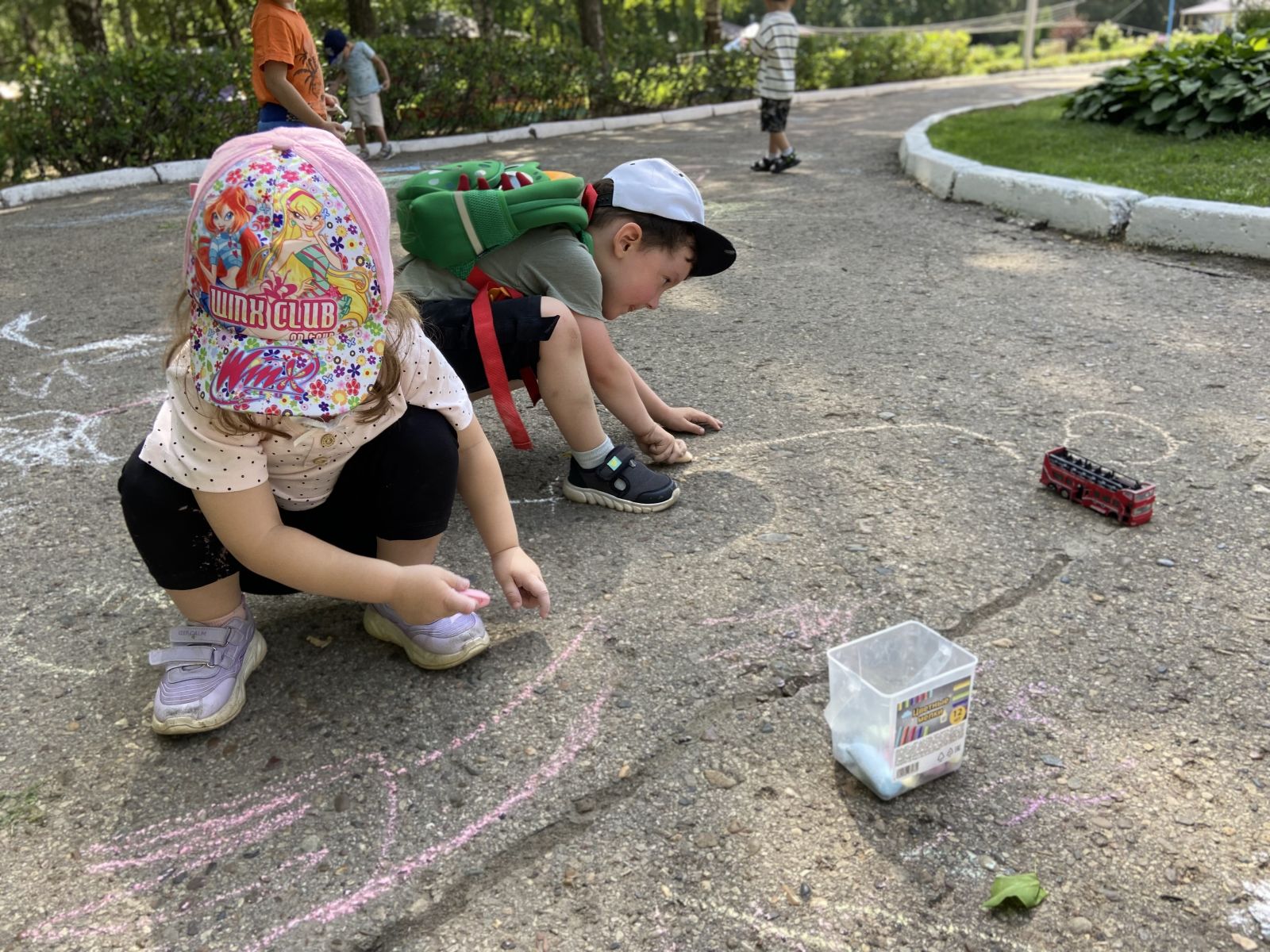 Сегодня в нашем детском саду прошел День рисования на асфальте. Рисование на асфальте - это не только веселое занятие для ребят на улице во время прогулки, но и творческое познание окружающего мира. Ребята с большим удовольствием рисовали солнце, небо, цветы, бабочки, домики. Разноцветные мелки в руках юных художников становились все меньше и меньше, а асфальт расцветал чудесными и удивительными рисунками. Рисование на асфальте вызвало у участников массу положительных эмоций, а главное, добрые рисунки на асфальте продолжают радовать детей и родителей.