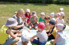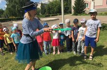 Музыка оказывает свое воспитательное воздействие детей во время прогулок, стимулируя их активность, самостоятельность, вызывая различные эмоциональные переживания, создавая хорошее настроение, оживляя накопленные впечатления. Наиболее подходящим для музыкальных проявлений детей на прогулках является летний период. Сегодня музыкальный руководитель Козлова Наталья Владимировна вместе с детьми старшей и подготовительной групп пели любимые песни, а детские музыкальные инструменты, захваченные с собой на прогулку, предоставили детям возможность импровизировать, исполняя несложные мелодии.