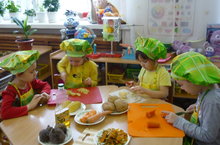 В детском саду реализуется проект "Витамины - наши друзья". В центрах активности детей ждут интересные задания. Особенно интересен детям центр кулинарии. Здесь можно узнать не только о витаминах, но и приготовить из овощей вкусный салат.