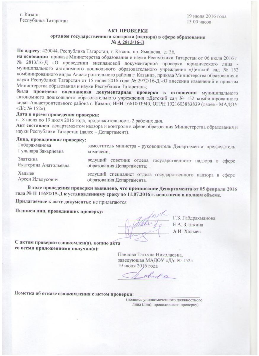 Акт проверки органом надзора и контроля в сфере образования 2016 г