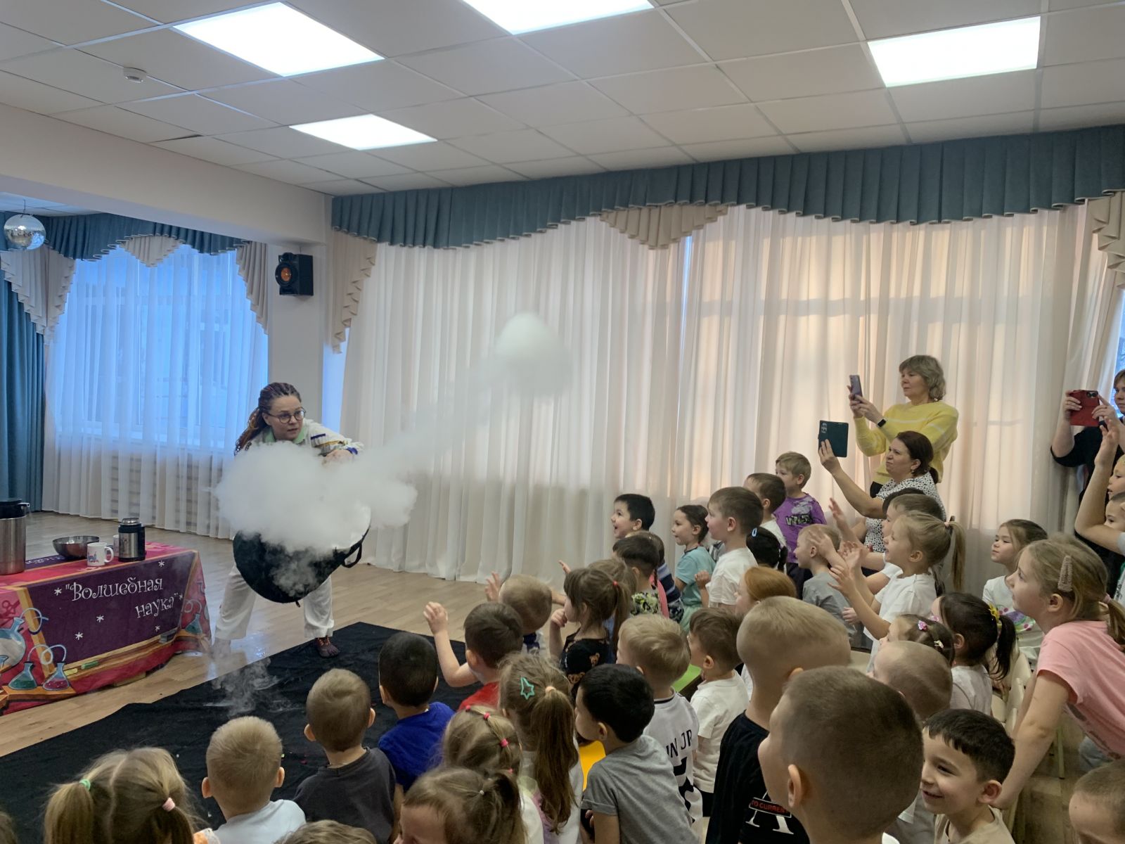 Также для детей было организовано развлекательно-познавательное научное шоу «Волшебная наука», где дети окунулись в атмосферу волшебства и узнали о секретах удивительных экспериментов, увидели невероятные превращения, которые происходят благодаря простым законам физики и химии. Ведущие шоу рассказали о науке простым языком, сделав сложные явления доступными и понятными даже самым юным зрителям.