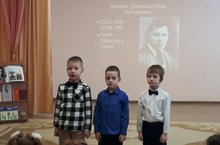 В нашем детском саду 15 февраля прошёл тематический вечер, посвященный 113-летию Мусы Джалиля. Дети старших и подготовительных групп стали участниками этого мероприятия. Ребята смогли познакомиться с биографией татарского поэта, прослушали детские стихотворения на русском и татарском языках. Глубокий след в детских душах оставил мультфульм о подвигах солдат-сыновей «Праздник матери» .