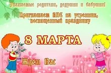 Дорогие мамы и бабушки! Приглашаем вас на праздник,посвященный Дню 8 марта, который состоится:
