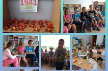 В этот день с детьми подготовительной группы была проведена тематическая беседа, посвященная Дню памяти и скорби. Дети прослушали голос Ю. Левитана о начале войны, читали стихотворения о Родине, о войне. Провели малоподвижную игру "Военный трубач" под марш "Прощание славянки" и завершили мероприятие созданием аппликации "Свеча памяти".