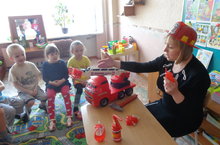 В средней группе № 7 Тюнегина Оксана Юрьевна провела очень интересную и познавательную беседу на тему «Важная профессия – пожарный». Во время беседы рассматривали пожарную машину, предметы: шлем на голову, маску на глаза, на нос; огнетушитель и другие предметы и узнали, для чего нужны пожарному эти предметы.