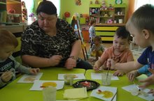 Сегодня дети подготовительной группы совместно с воспитателем по обучению детей татарскому языку Залялиевой Л.М. в утренний отрезок времени играя, повторяли пройденный материал, общались с воспитателем на татарском языке.
