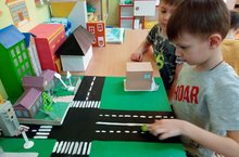 Макетирование – это творческая конструктивная деятельность детей, создание специального игрового пространства. В образовательном пространстве макеты способствуют развитию творческого познавательного мышления, поисковой деятельности и бескорыстной познавательной активности каждого ребенка.Для игры с макетом "Мы по улице шагаем" дети подготовительной группы вместе с воспитателем разработали дидактические игры:1. «Наш друг светофор».Цель игры: Закрепить представление детей о назначении светофора и его сигналах.2. «Верно - не верно».Цель: Закрепить с детьми правила безопасного поведения на улицах и знаки для пешеходов.3. «Расставь правильно знаки».Цель: Развивать у детей наблюдательность, мышление, внимание. Так же макет можно использовать при рассматривании, беседы, отгадывания загадок. -
