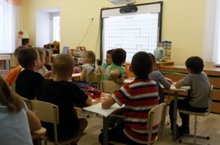 В подготовительной группе интерактивная доска большая помощница. Как удобно проверить результат после графического диктанта.