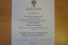 Диплом победителя в конкурсе "Радуга открытий" 13.02.2014