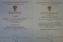 Дипломом 1 степени Всероссийского дистанционного конкурса методических разработок по формированию исследовательских умений детей дошкольного возраста "Радуга открытий" награждается Насибуллина Наиля Наилевна. Тема конкурсной работы "Капелька в гостях у ребят". Коллектив детского сада поздравляет Наилю Наилевну с победой. Так держать!!!