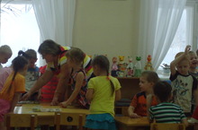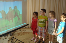 Воспитатель по обучению татарскому языку Залялиева Л.М. показала воспитателям ДОУ занятие по обучению детей 4-5 лет татарскому языку с использованием современного УМК. На занятии Люзия Масхудовна использовала различные формы: ИКТ, использовала игры на закрепление слов, на знание цветов, на умение задавать вопросы по картинкам, отвечать на заданный вопрос и поощрять за ответ. Дети познакомились с новыми словами по теме "Одежда". В заключении дети посетили магазин одежды.
