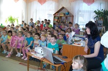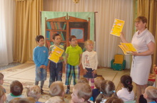 Ведущий специалист отдела по пропаганде БДД Газизова Айгуль Зуфаровна провела урок безопасности и показала мультфильм для детей "По дороге со смешариками". Дети в процессе просмотра учились находить выход из самых неожиданных ситуаций, в которые попадали герои сериала и которые вполне могут произойти в реальной жизни. Гуляя по городу с персонажами любимого мультсериала, ребята обобщили, что означают сигналы светофора, изучили виды городского транспорта, дорожные знаки и правила перехода через улицу.