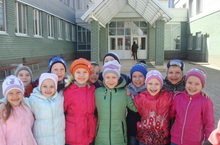 Скоро дружная подготовительная группа пойдет в школу. А сейчас пока совершает экскурсии по школам. На фотографии наши воспитанники около школы № 33.