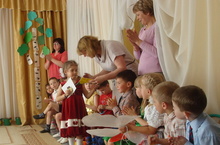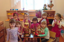 Сегодня, во второй младшей группе завершился проект "Русская ярмарка". Воспитатели Фарида Фазыловна, Алина Салимовна, помошник воспитателя Мария Сергеевна творчески реализовывали проек: разучивали потешки, лепили из соленого теста баранки, раскрашивали русский самовар, переодевались в русские костюмы. Итоговым мероприятием была выставка детских работ по теме и был накрыт стол в русских традициях.