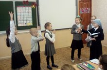Учащимися 3-х классов была показана сказка "В мире волшебников" для учащихся начальной школы. Участников представления наградили сладкими подарками
