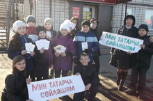 17 марта учащиеся 5х классов и учителя татарского языка провели акцию "Мин татарча сөйләшәм" около магазина "Кедр" в пос. Сухая река. Учащиеся раздавали прохожим словарики, общались на татарском языке.