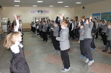 19 февраля учащиеся 3б класса организовали для учащихся начальной школы флешмоб "Спасибо деду за Победу!"